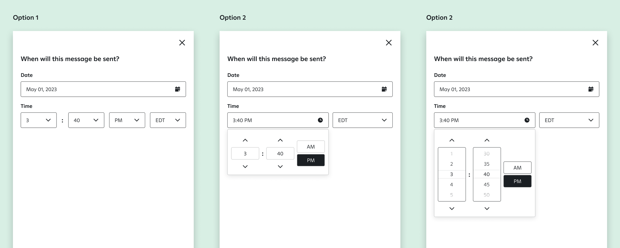 The Magic Composer team identified a need for a better UX & UI for picking a specific time to send a Message. They were using a Single Select to get the job done for the time being.